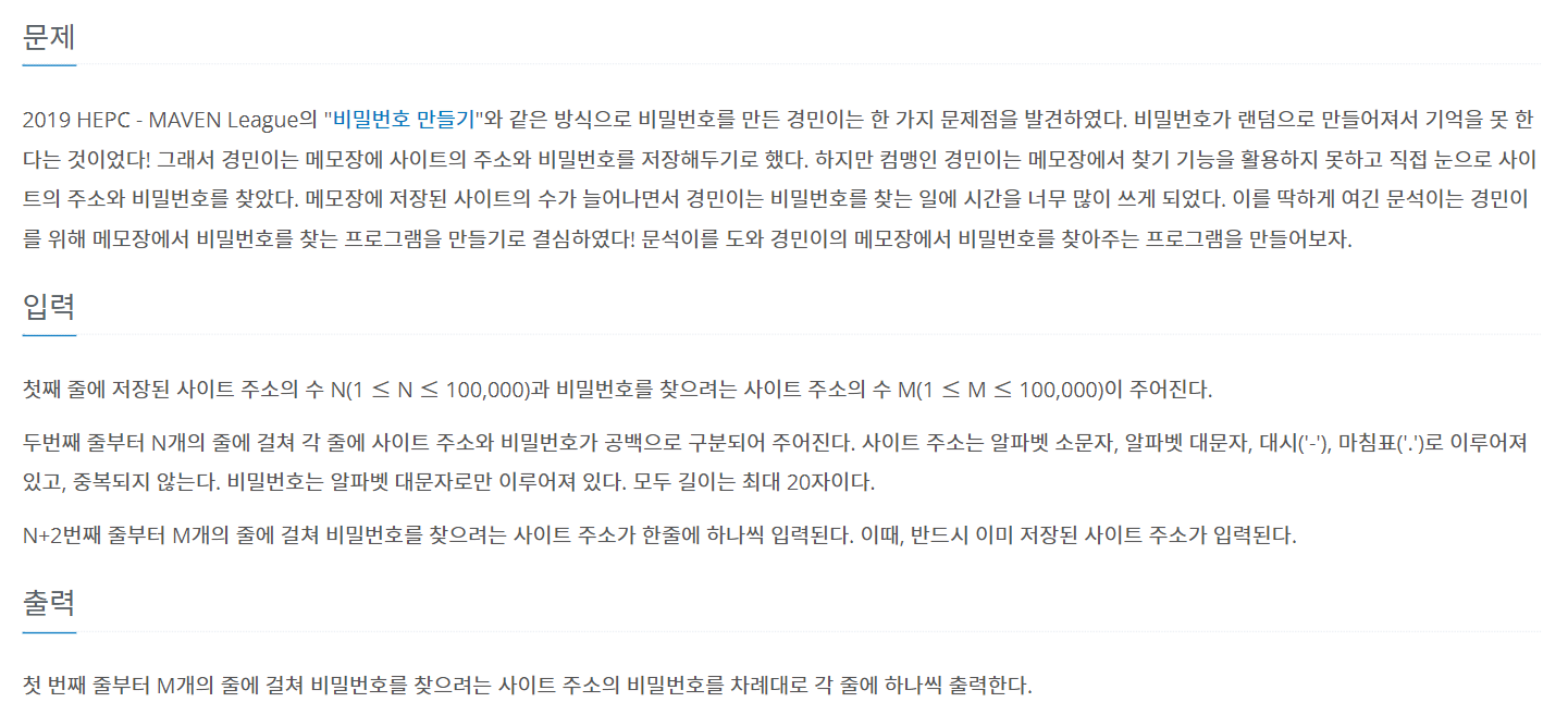 https://www.acmicpc.net/problem/17219
