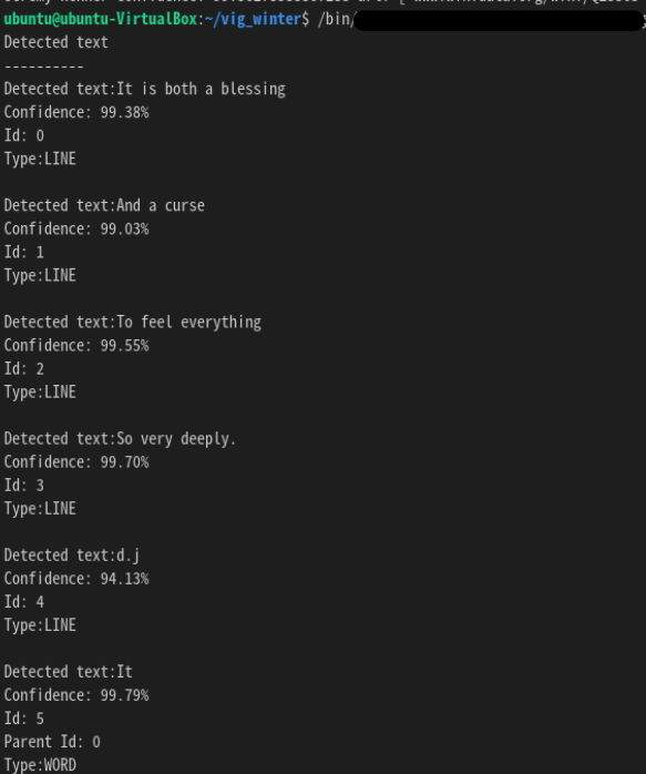 response=client.detect_text(Image={'S3Object':{'Bucket':bucket,'Name':photo}})