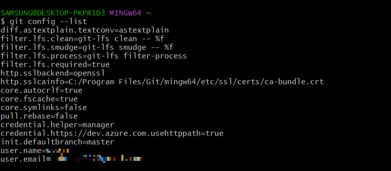 제일 마지막 줄을 확인하면, 본인이 설정한 이름과 이메일이 등록되어 있음을 확인할 수 있다!!
